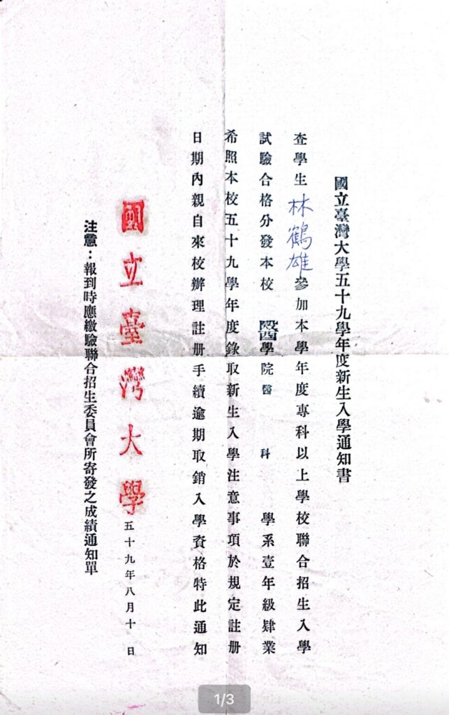 他如願考上當時的第一志願高雄中學,在醫師叔叔的耳濡目染下,埋下立志從醫的種子。然而命運卻先給他一個小小的考驗。第一次聯考,他與台大醫學系擦肩而過,只差了0.5分,轉而進入高雄醫學院就讀。這段時間,他沒有氣餒,反而更堅定了夢想。翌年再戰,終於順利踏入台大醫學系的大門,走進那座他心目中的知識殿堂。